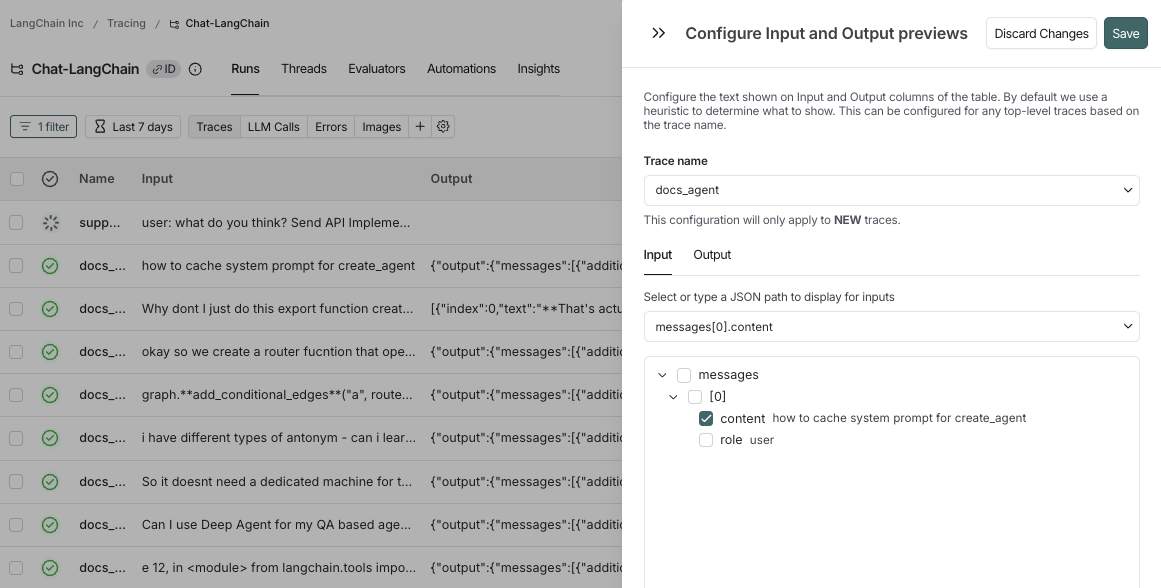 You can now configure which parts of a trace’s inputs and outputs appear directly in the tracing table.